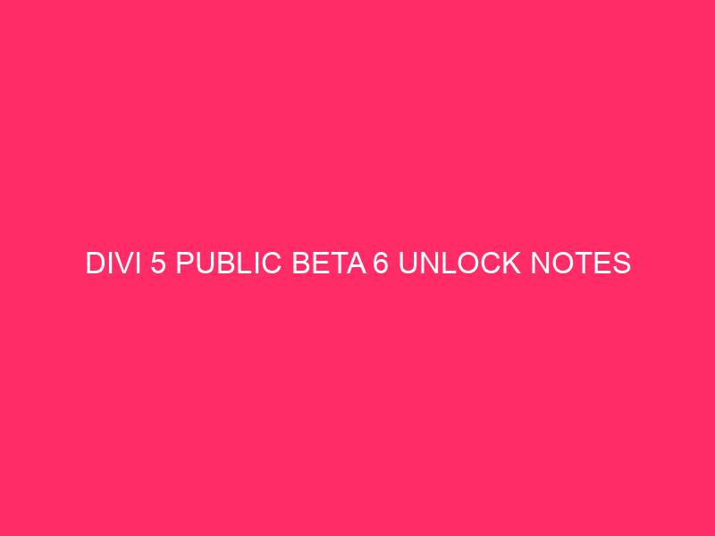 The submit Divi 5 Public Beta 6 Unlock Notes gave the impression first on Sublime Topics Weblog.