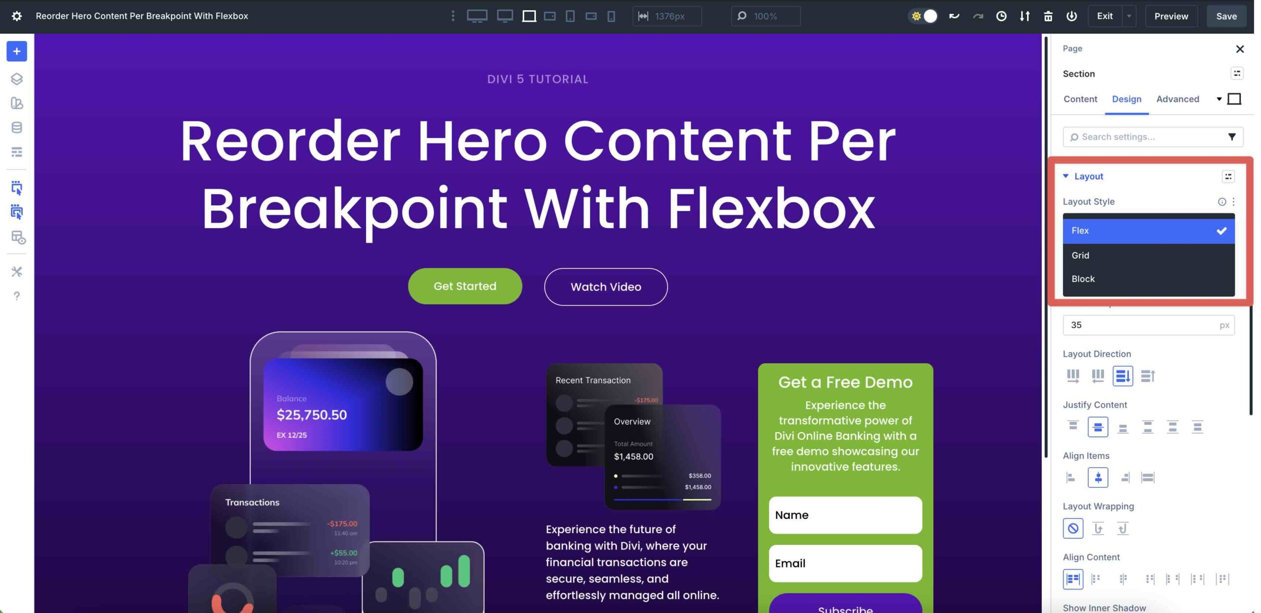 Flexbox in Divi 5 represents a forward-thinking responsive web design gadget that makes it easier than ever to build hero sections that look surprising during all visual display unit sizes. With intuitive controls for Construction Path, Display Order, Development Templates, and seamless integration with Customizable Responsive Breakpoints, you’ll reorder content material subject material with a few clicks.